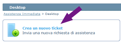 per prima cosa cliccare su "Crea un nuovo ticket" per inviare una nuova richiesta di assistenza