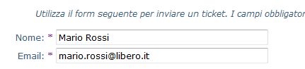 Un'email di conferma dell'avvenuto invio del Ticket sarà inviato all'indirizzo specificato al momento della compilazione
